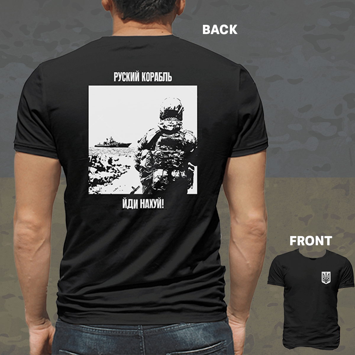 A Ukrainian soldier responds: "Russian warship, go f*** yourself."